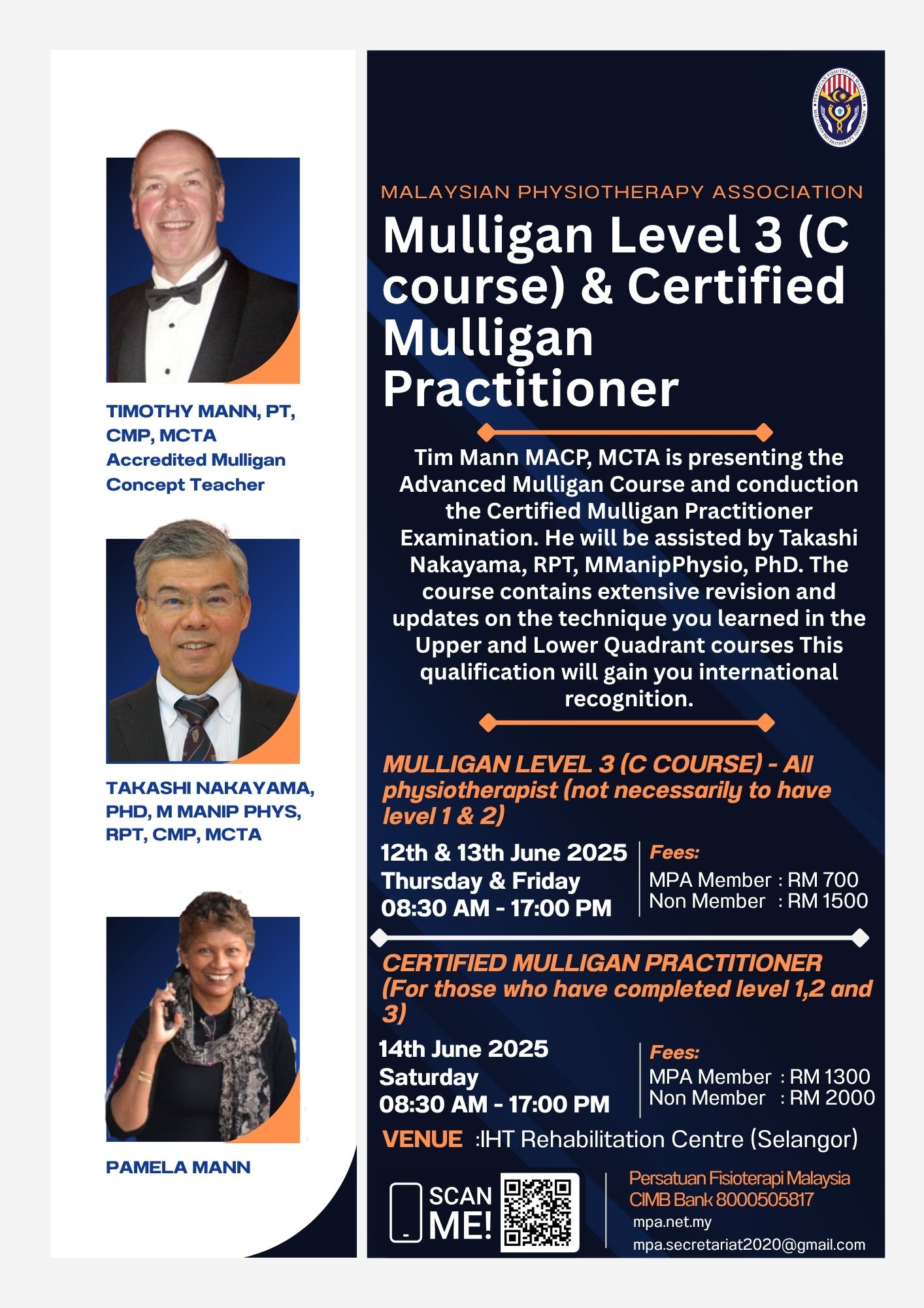 For those who have completed level 1, 2 and 3 are allowed to participate the Certified Mulligan Practitioner on the 14th June 2025