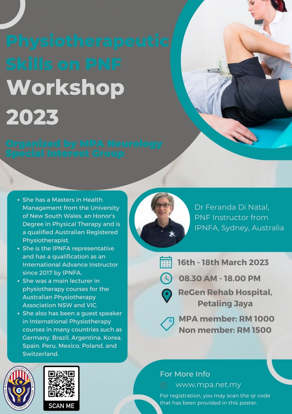 Physiotherapeutic Skills on PNF Workshop 2023 organized by MPA Neurology Special Interest Group is happening on 16th - 18th March 2023.
