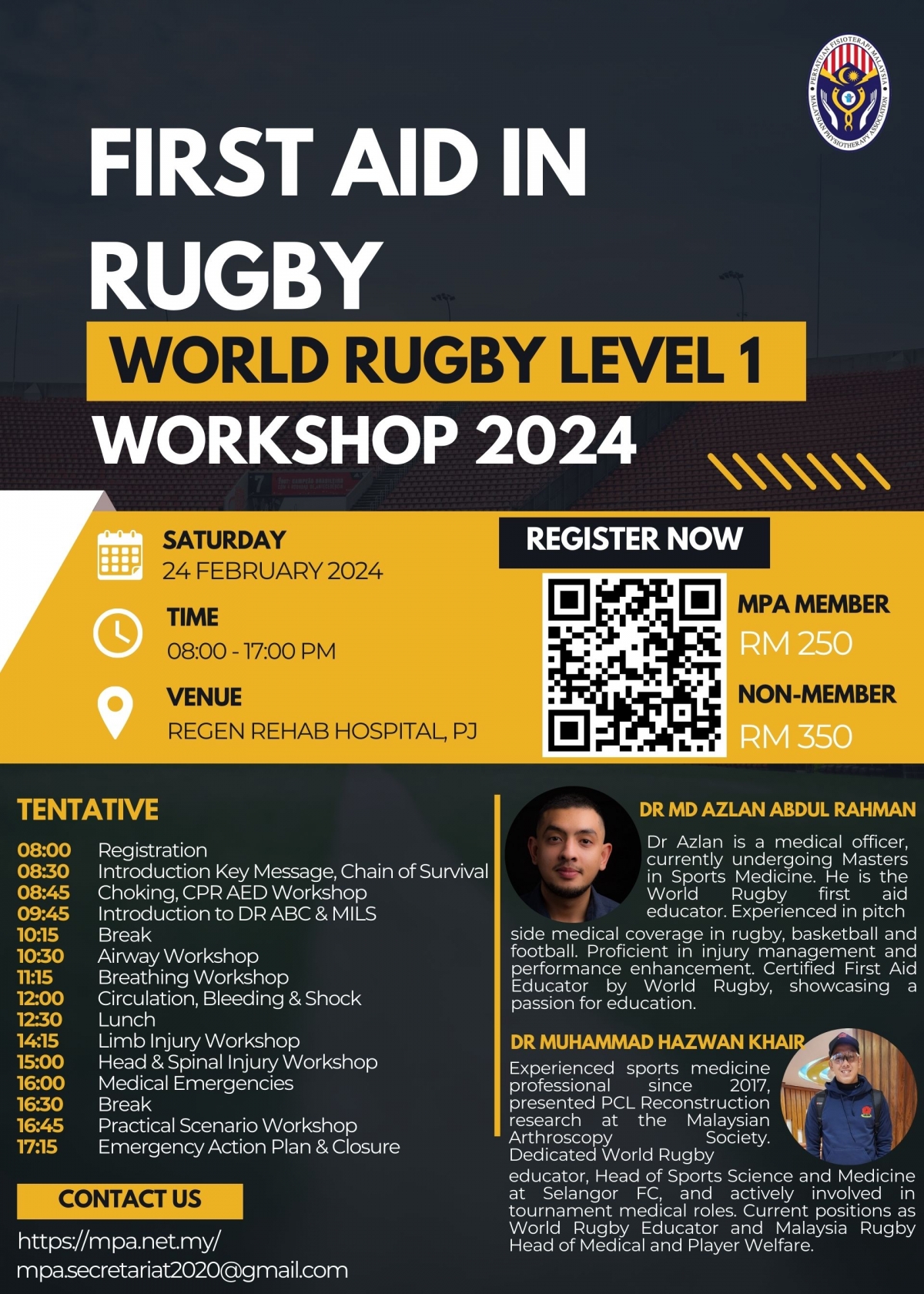 First Aid in Rugby Workshop 2024: World Rugby Level 1, organized by the MPA Sport Special Interest Group, is happening on 24th February 2024.
