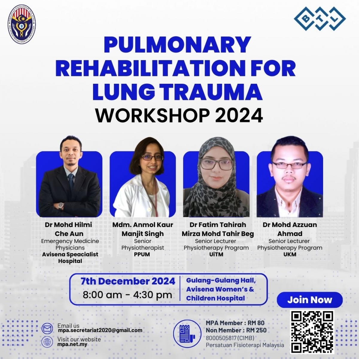 Pulmonary Rehabilitation for Lung Trauma Workshop 2024 organized by MPA Cardiorespiratory Special Interest Group is happening.