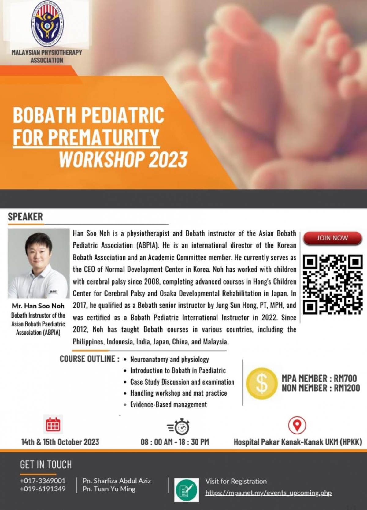 Bobath Pediatric For Prematurity Workshop 2023 organized by MPA Paediatric Special Interest Group is happening on 14th & 15th October 2023.