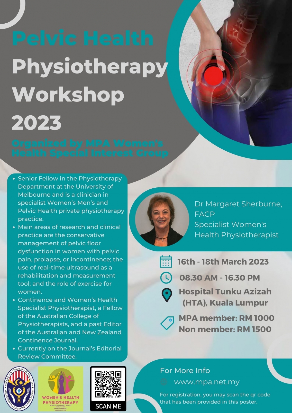 Pelvic Health Physiotherapy Workshop 2023 organized by MPA Women's Health Special Interest Group is happening on 16th - 18th March 2023.