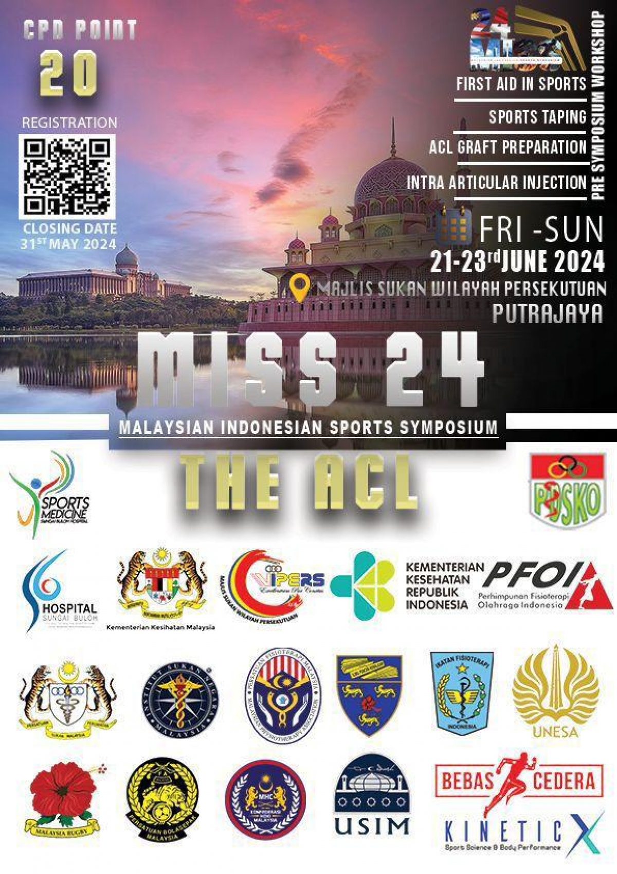 Are you passionate about sports science, physiotherapy, and athletic training? Don't miss the Malaysian Indonesian Sports Symposium (MISS) 2024, focusing on the Anterior Cruciate Ligament (ACL). This symposium is a unique platform for professionals, researchers, and enthusiasts from Malaysia, Indonesia, and beyond to come together, share insights, and advance knowledge in sports medicine.