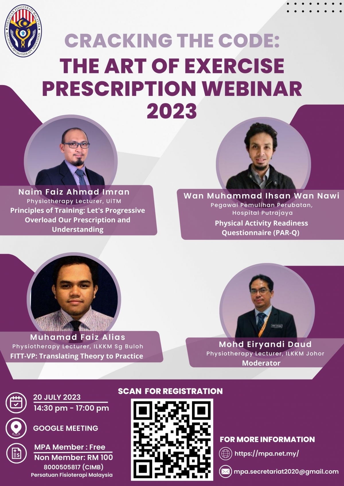 Cracking the Code: The Art of Exercise Prescription Webinar 2023 organized by MPA Exercise Prescription Special Interest Group is happening on 20th July 2023.