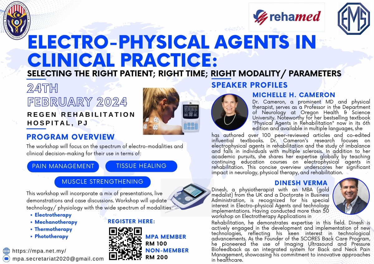 Electro-Physical Agents in Clinical Practice: Selecting the Right Patient; Right Time; Right Modality/ Parameters, organized by the MPA, is happening on 24th February 2024.