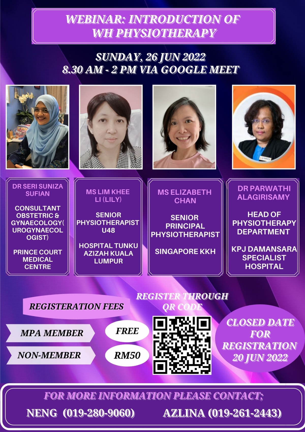Join us for the 59th Annual General Meeting of the Malaysian Physiotherapy Association (MPA) will be held on Sunday, 3 July 2022 at 8.30 am to 1.00 pm.