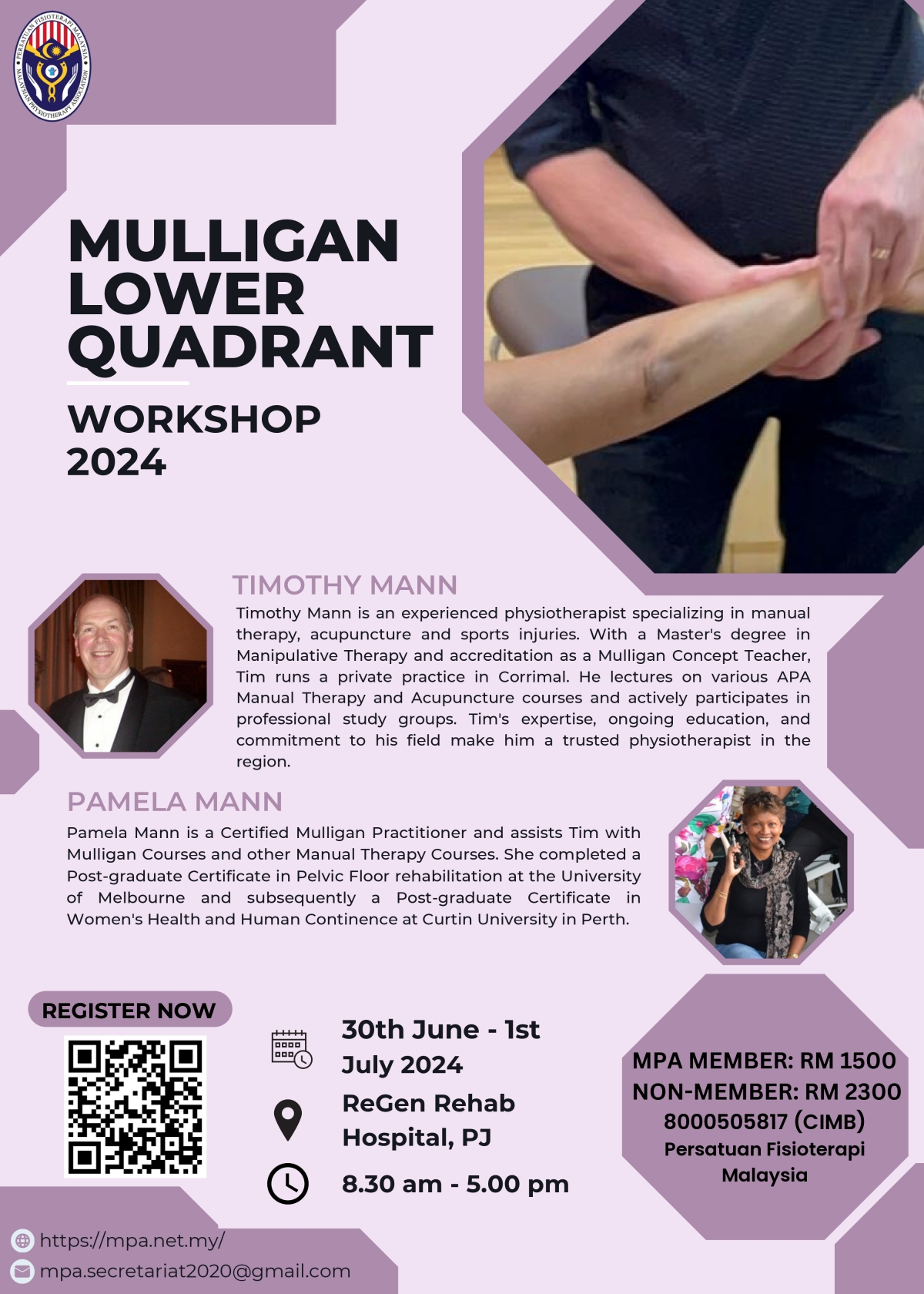 Mulligan Lower Quadrant Workshop 2024 organized by MPA Musculoskeletal Special Interest Group is happening on 30th June 2024 - 1st July 2024.