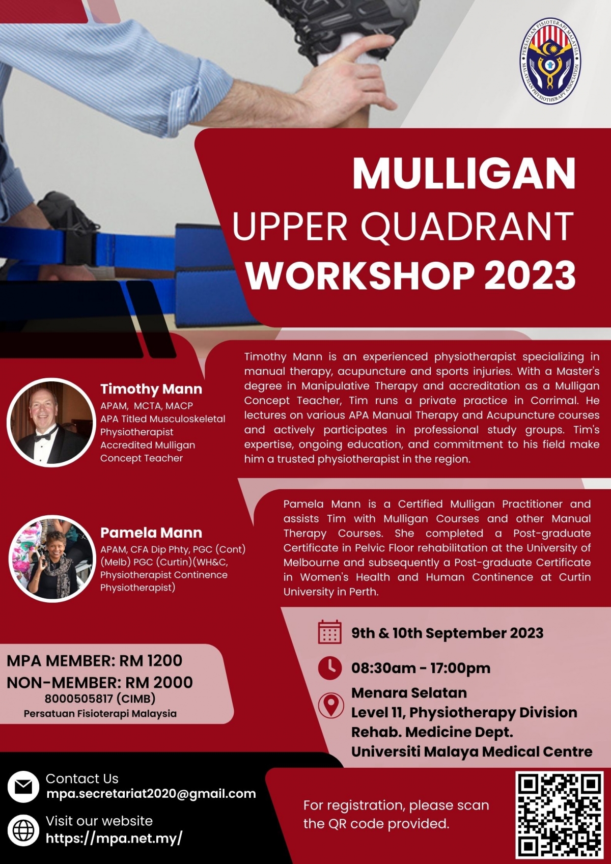 Mulligan Upper Quadrant Workshop 2023 organized by MPA Musculoskeletal Special Interest Group is happening on 9th & 10th September 2023.