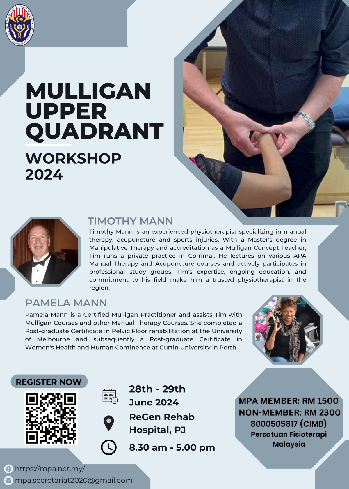 Mulligan Upper Quadrant Workshop 2024 organized by MPA Musculoskeletal Special Interest Group is happening on 28th - 29th June 2024.