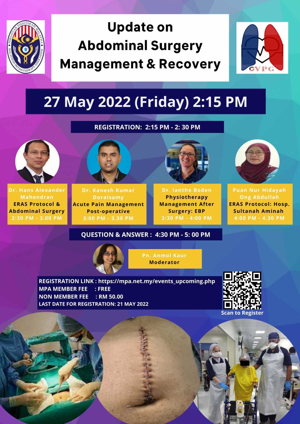 We are delighted to inform you our first Masterclass Webinar 2022 title "Update on Abdominal Surgery Management & Recovery" will be conducted in May 27, 2022.